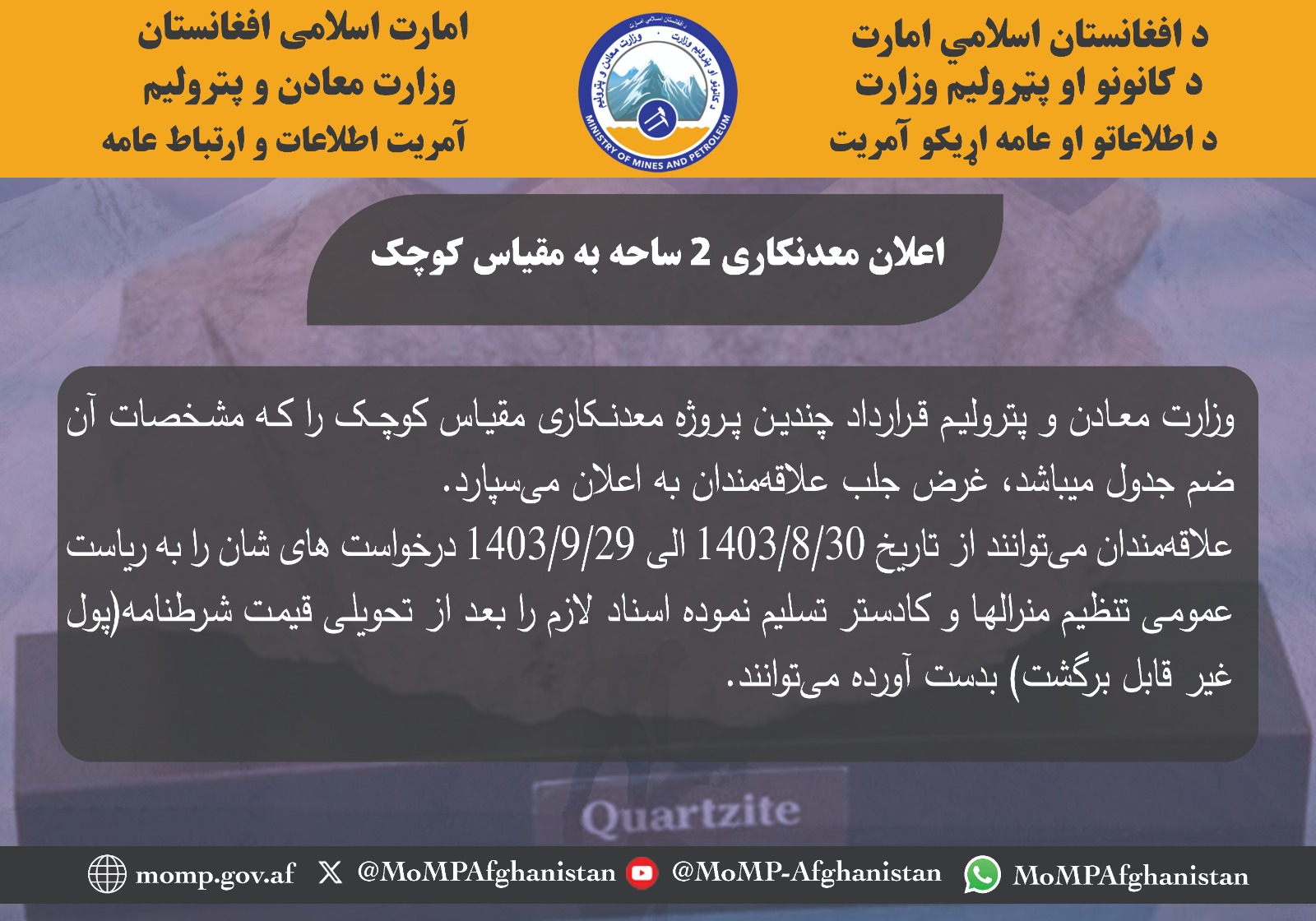 اعلان معدنکازی 2 ساحه به مقیاس کوچک