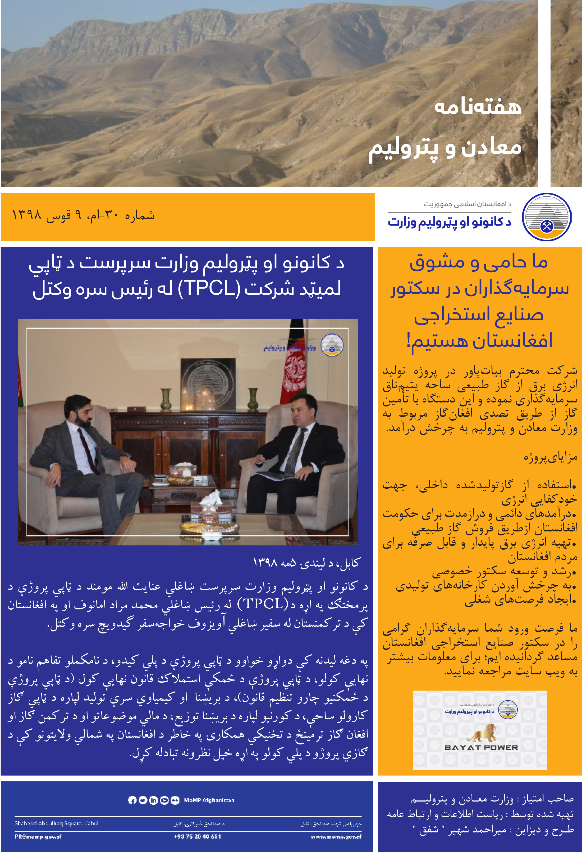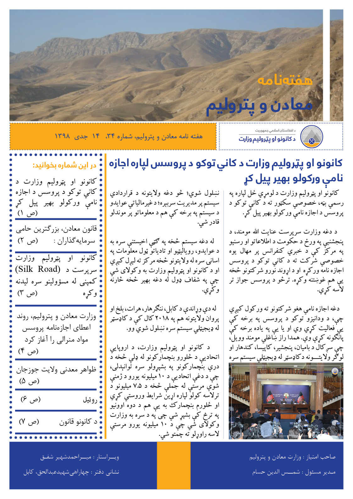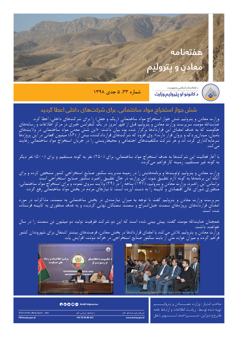 هفته نامه الکترونیکی وزارت معادن و پترولیم