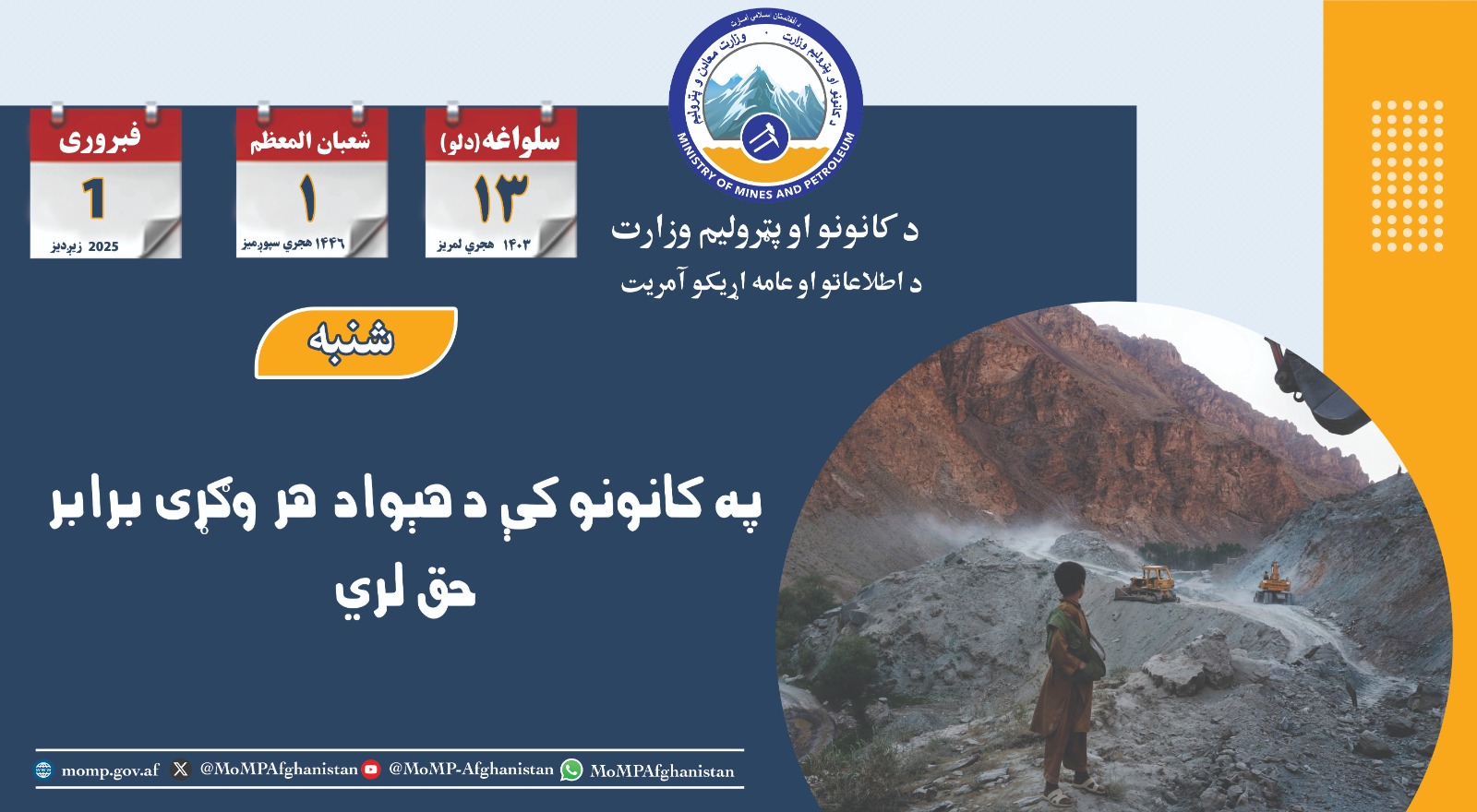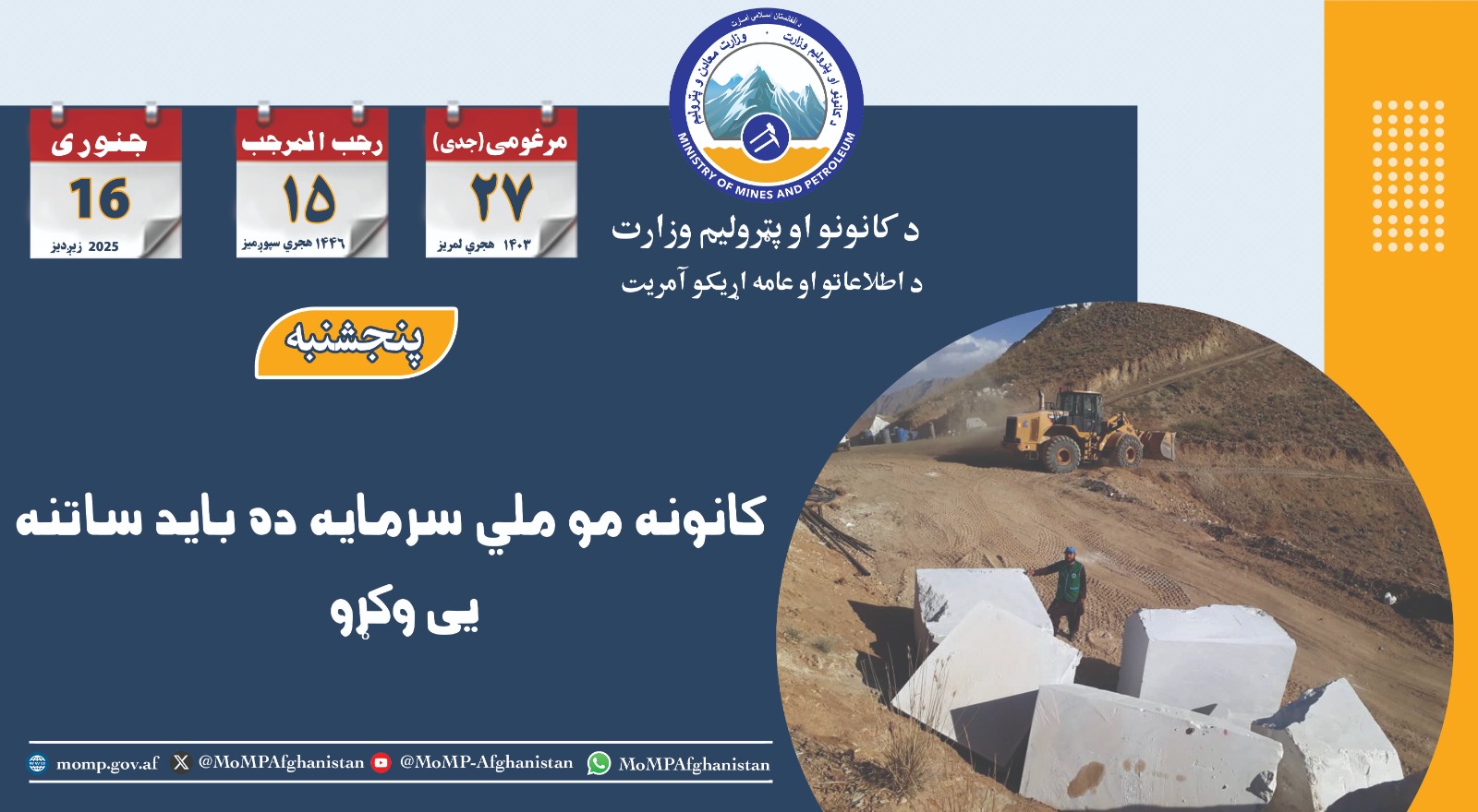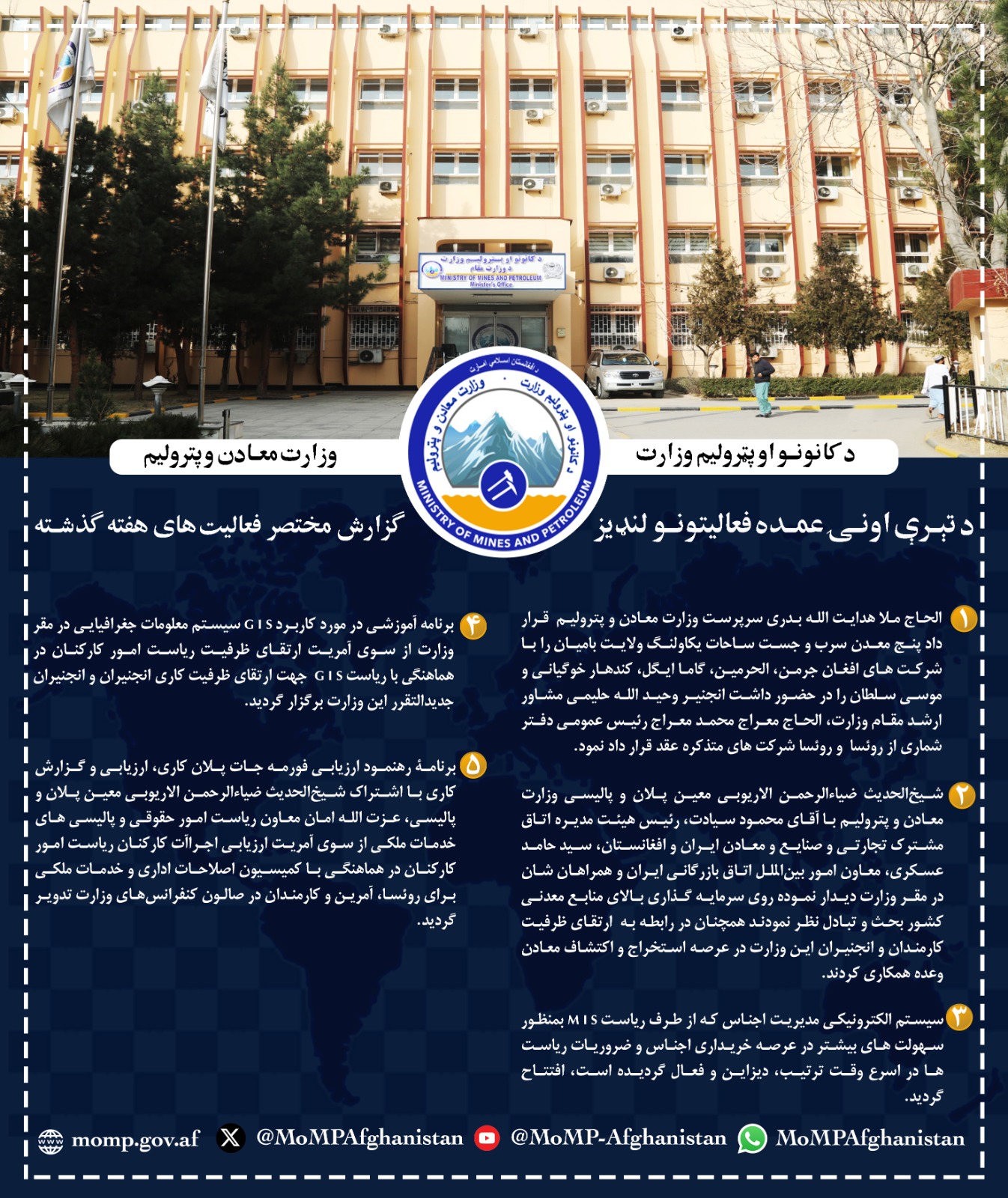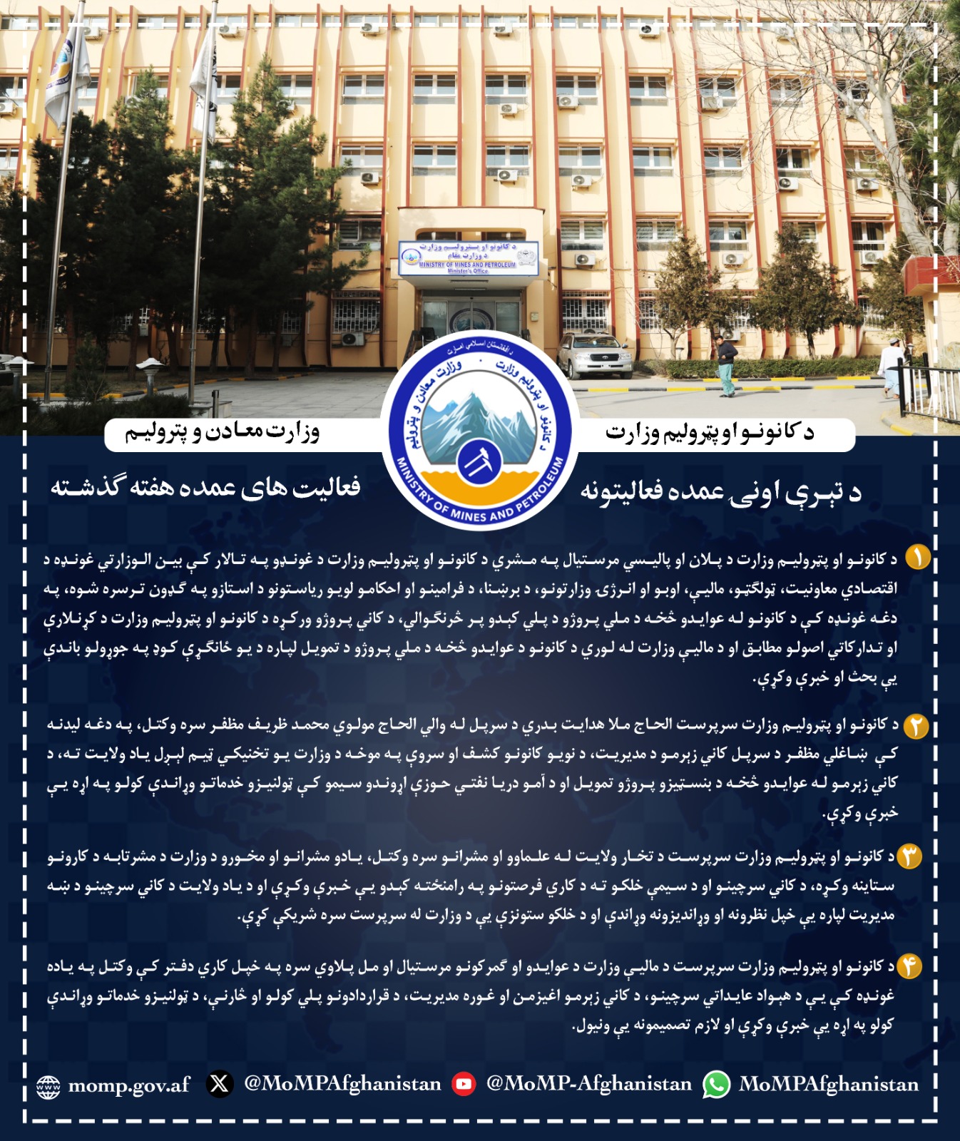 د کانونو او پټرولیم وزارت د تېرې اونۍ عمده فعالیتونو لنډیز: ۲۲/ ۱۰/ ۱۴۰۳